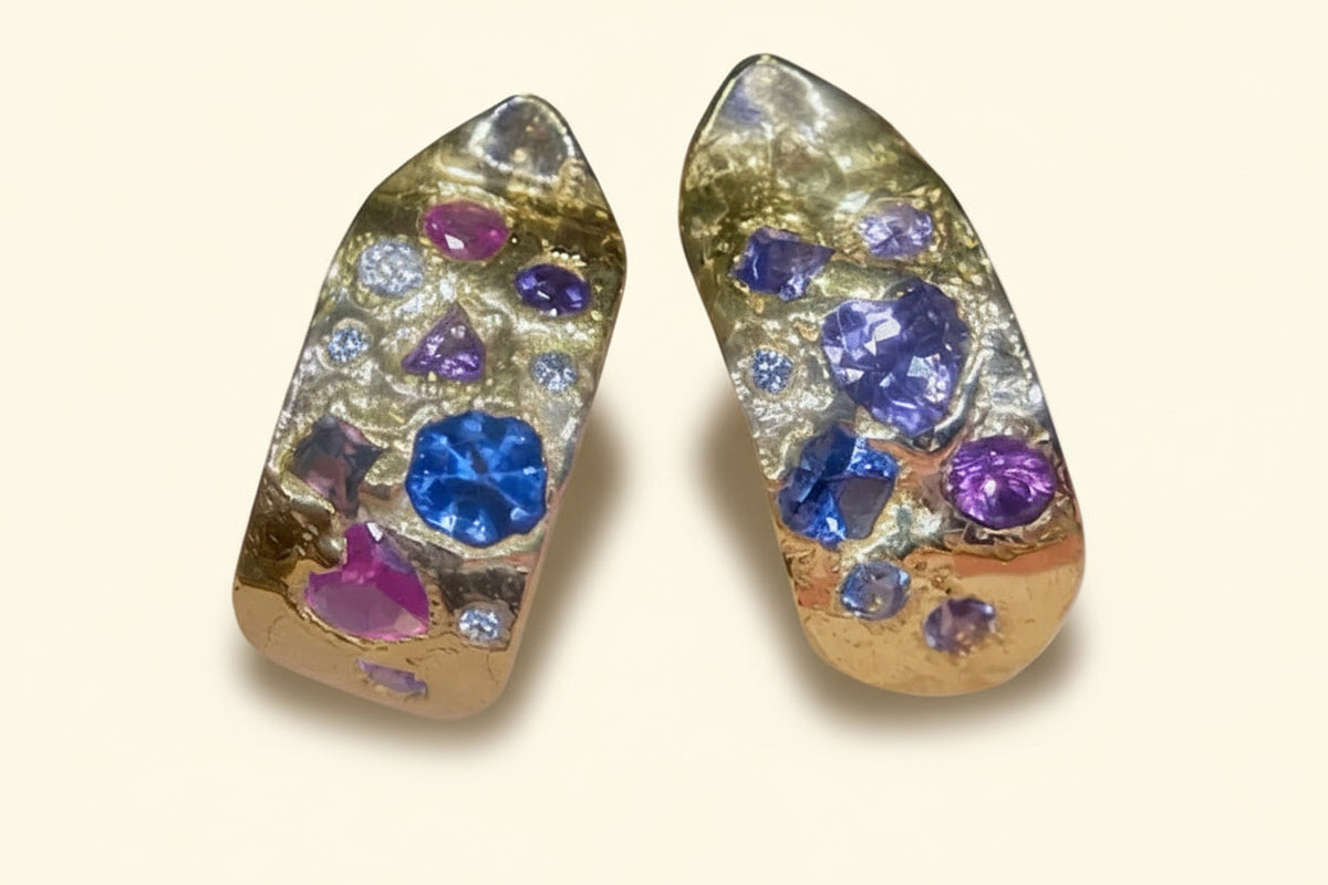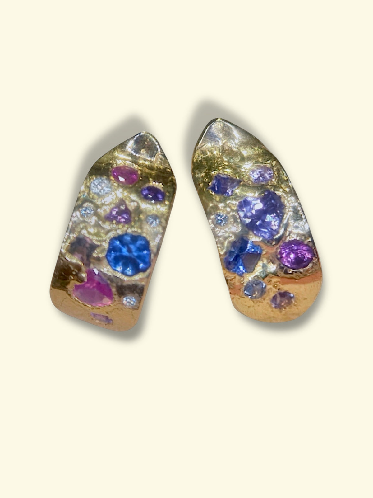 Puzzle Abstract Art Stud Sapphires & Brazilian Paraiba Cabochon 18 Ct Gold (Available at Stardust, London 101 Walton Street)