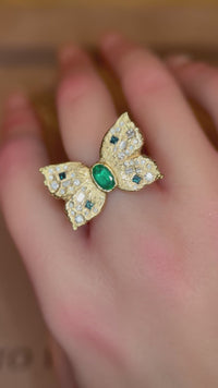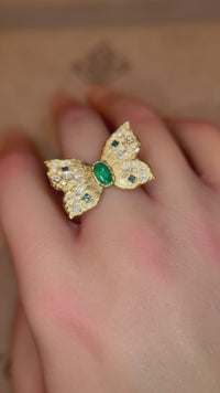 Emerald Queen Butterfly Ring with White and Blue Diamonds 18 Ct Gold - Collected — Bespoke Variations Available